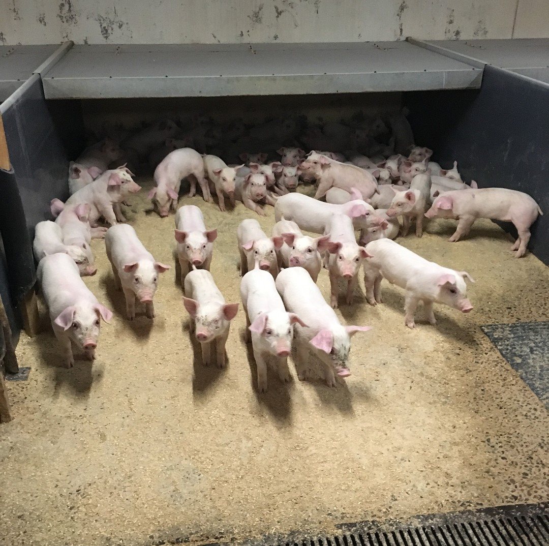Vi er ca. 11 medarbejdere der beskæftiger sig med grisene.